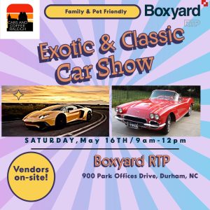 Boxyard RTP-Exotic & Classic Car Show-May 16th 9am-12pm